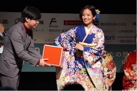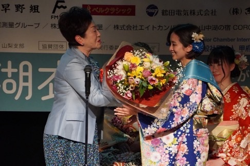 審査の結果、第20代湖衣姫役に、市川三郷町出身で横浜市在住のフリーアナウンサー、河西歩果さんが選ばれました。