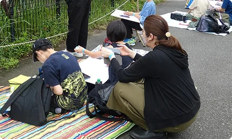 1977年、「陽気の良くなった季節に、野外で家族一緒にキャンパスに向かい絵を描き、仲良く昼食をとりながら楽しくコミュニケーションをはぐくんでほしい」という思いからから始まった事業「親と子の集い」を起源とし、親とこどもがふれあえることを目指し、毎年5月にふれあい写生大会を開催しています。